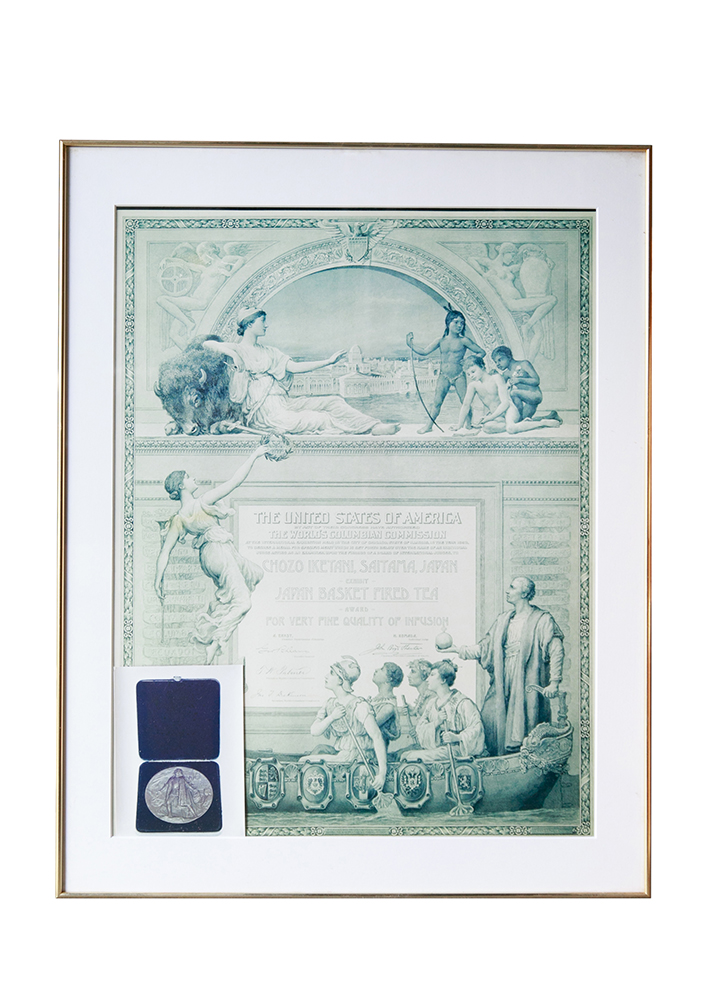 明治26年(1893)に、米国シカゴで開催された世界コロンビア博覧会に出品した煎茶が入賞し、銅メダルを授与されたのも当園の古い歴史の1つです。このような、古くから受け継いだ技術を活かし、現代のニーズに合った美味しい狭山茶づくりに励んでいます。